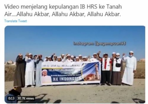 INDONESIAKININEWS.COM - Video ucapan dari sejumlah orang di Arab Saudi melepas pemimpin Front Pembela Islam (FPI) Habib Rizieq Shihabberedar di media sosial Twitter.